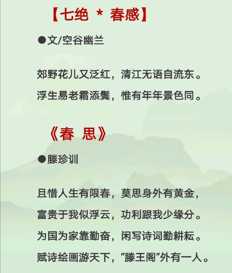 \ 组诗:《春感》/清风/袁精兵/梅引雪深/空谷幽兰/滕珍训