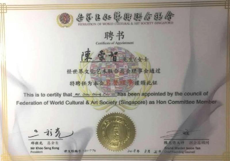 作者简介:陈崇智,男,现侨居泰国,1954年出生于中国广东汕头澄海程洋冈。自幼喜爱书法,长期研习颜体楷书,书法作品经常参加海内外赛展并获奖。现任泰国中华会馆图书馆主任,泰国泰中书画院副院长,世界文化艺术联合总会名誉理事。