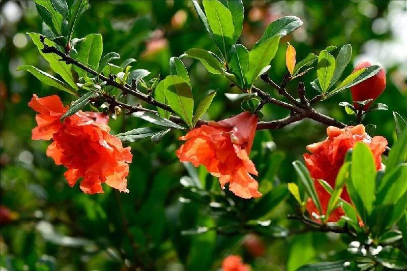 初夏石榴红蕾绽,粉裙羞妒怨农家。