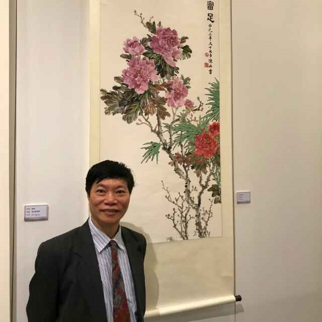 12. 陈兴 广东顺德人,现任香港孔教学院名誉院长,五邑社团总会常务理事,香港历史学会顾问,《澳门书法》杂志编辑委员,画作入选第12、13届全国美展,曾接受亚洲电视《文化风情》节目专访。