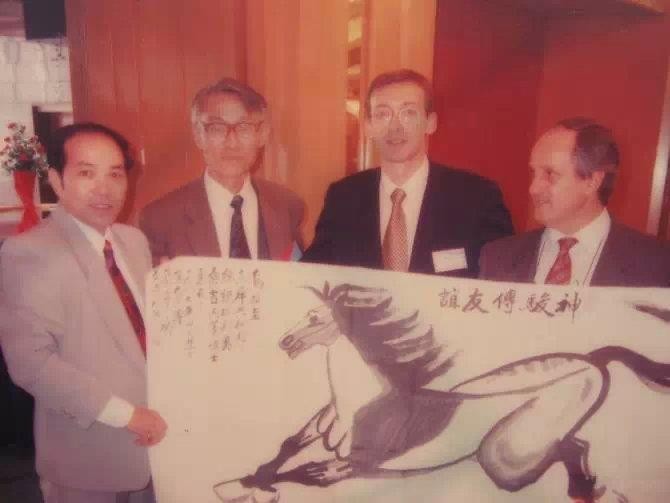 余曾在某石化进出口公司任职近20年,期间因商务活动曾多次出国考察、签合同;先后去过中东、欧洲、美洲等地40多个国家和地区;1994年,应南椎体七国之邀,我外经贸部组织100个外贸公司去南椎体参加首届【中-南】经贸洽谈会;我司是受邀单位……首站乌拉圭;洽谈会期间,经我驻乌拉圭大使汤X新之牵线和举荐;本人有幸被乌总统单独接见,下图为本人送画给乌总统的照片。