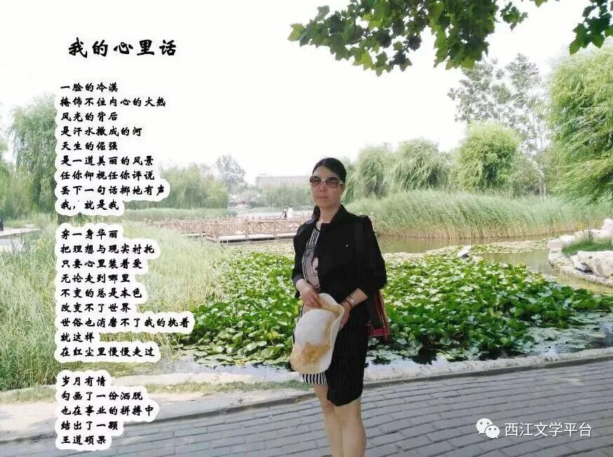 王道爱,女,笔名,静娴女子,网名,正定疾控,热爱生活,诗意人生。《中华诗歌网》认证诗人,网站编辑,作品大多在《中华诗歌网》发表。职业:医生。医者仁心,大医精诚。