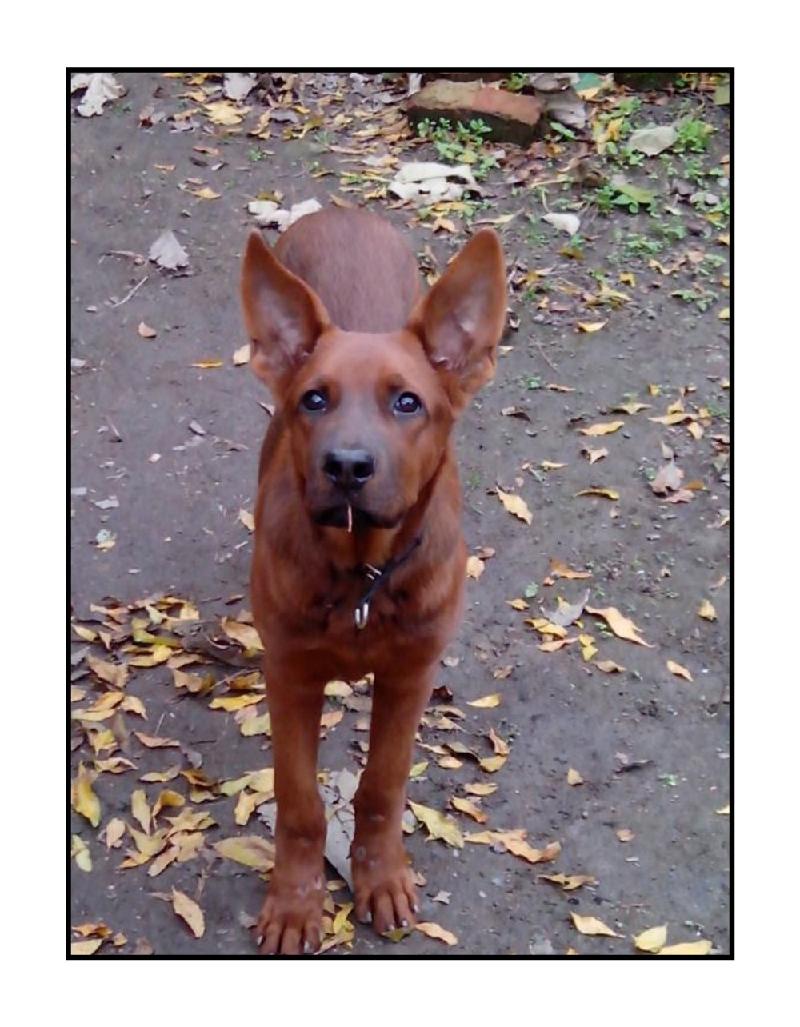 我一下就被它综红的毛色、矫健的身材吸引住了。它头圆,腿壮,耳朵竖竖的,鼻儿长长的,身挺、眼亮、毛粗,还胸藏。乖乖,少校所称道的良犬标准,它全合格。