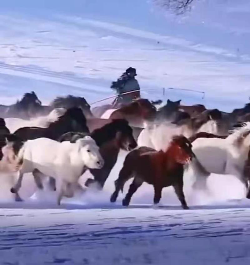 慌岭飞烟万马驰,草原飘雪雾如织。