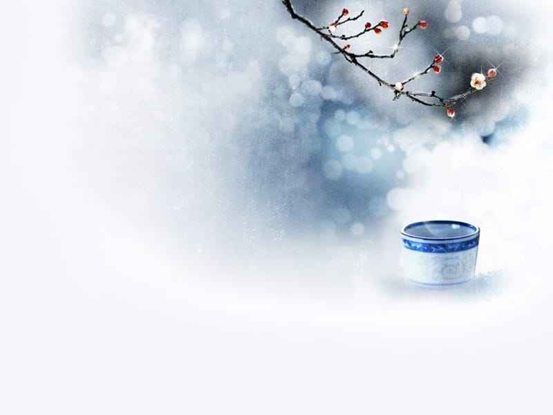 吟梅爱竹寒三友,品茗贪杯暖一堂。
