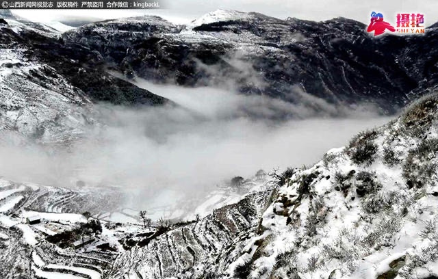 藏在白雪的下面,薄雾弥漫的山谷