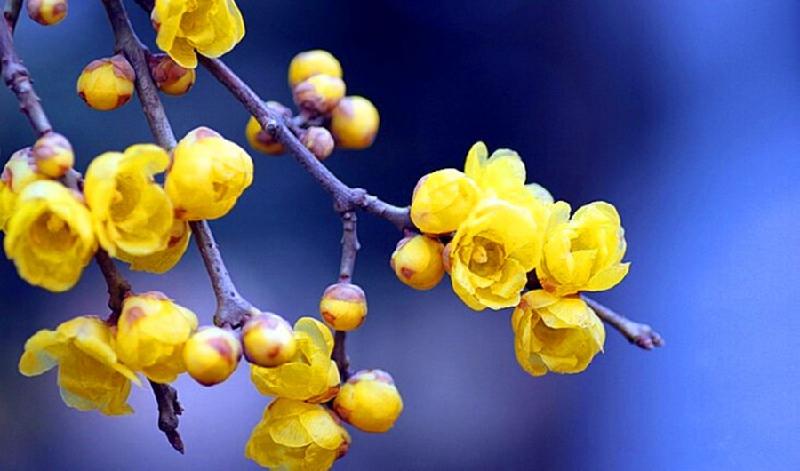 明代李时珍《本草纲目·腊梅》中也说:“腊梅,释名黄梅花,此物非梅类,因其与梅同时,香又相近,色似密蜡,故得此名。”诗人苏东坡有“蜜蜂探花为黄蜡,取蜡为花亦此物”的诗句,才有“腊梅”这个芳名。腊梅,属梅科植物,为落叶灌木,高不过3米,先花后叶。主要为黄色,香味较浓。正常年景腊梅的开放的时间总在岁序入冬,进入滴水成冰、呵气成霜的时节,万物萧条,百花凋谢,只有腊梅一花独放。腊梅是先开花,后长叶的,这叶是在春天花谢之后,萌发生长的。立冬之后,腊梅就开始打朵了,在灰色的枝条上,拱出无数的小点点,米粒大,麻麻小,金灿灿,黄澄澄,素淡致雅,美而不艳,馨香四溢,令人怜爱。小雪、大雪之后,腊梅的花骨朵渐渐充实膨胀,冬至数九后,腊梅苏醒了,渐次开放了。立春之后,腊梅全都开放了,它是那样热烈,激情四射。古人对腊梅赞曰:“二十四番花信转,春魁还自让君占。”它总是抢先一步,早于梅花之前把浓浓的春意送到人间。就腊梅的色、姿、香来说,远远超过百花,其香也远远超过梅花。