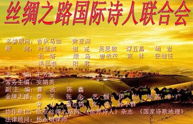 值此元旦佳节到来之际,我们“丝路诗刊”特邀请国内外著名的诗人、作家萨仁图娅(蒙古)、和 谷、商子秦、王芳闻、张浩文、杨焕亭、三色堇、远村、胡红拴、春天、卞启忠、刘雅阁、温古(蒙古)、白麟、伏萍、汪海君、凌晓晨、杨舟平、李宝萍、党端婧、王海霞”等近二十位文艺大咖及著名书法家麻天阔、著名主持人艺媛、伊兰、星光大道歌手张静给大家送上新年的祝福,我们丝绸之路国际诗人联合会微刊“丝路诗刊”编委也向全国及海外广大作者和读者朋友致以衷心的节日问候和诚挚的新年祝福!祝愿广大文艺家和文艺工作者在新的一年里创作丰收,幸福安康!