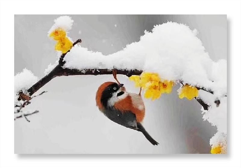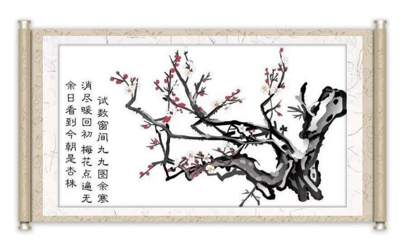 如"风"韵:九九消寒拂晓风,莺歌燕舞雪冰融。