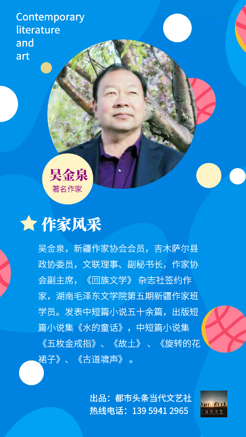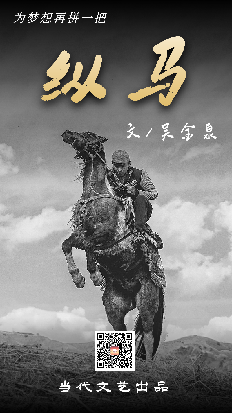 拜读吴金泉老师的短篇小说《纵马》,作品通过主人公志强纵马天山,命悬一线。危机时刻,他经历着一场场生死考验和心理素质较量。是甘于放弃生命,还是战胜自我拚死一搏?终于在频临崩溃时,是亲情和爱唤醒了他,是母亲、妻子,女儿唤醒了他,使他终于战胜了内心的懦弱,克服了生命的极限,创造了人生的奇迹。这篇小说反映了以志强等为代表的我国农牧民,通过自己拚搏,努力脱贫致富的抱负,歌颂了他们朴素的追求、生活、爱情和亲情观。作品描写大漠,风光旖旎,精彩纷呈;情节跌宕,结构紧凑,让人惊心动魄;文笔行云流水,妙言溢香,带给人美的享受。作者用浓墨重彩通过大量的心理描写和行为描写塑造了一个有本事,有热情,有血情,有担当的一个农牧民好汉子,颇受读者欢迎。