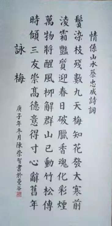 蔡忠成,网名情系山水,广东汕头人,汕头杏园诗社社员。华夏诗社副主编,世界文化艺术联合总会名誉理事。作品发表于《儒林门第》《山东诗歌》《岭南诗社》《杏园诗社》《华夏诗社》《黄鹤诗苑》等二十多家名刊及世文联网站、都市头条和澄海100地方官方公信平台。己亥年廿四季节律诗入选世界文化艺术联合总会文档。荣获2020年"牡丹杯"〈全国诗歌诗人奖〉〈国际名人榜中榜〉〈全球新年星光榜〉文鼎庐主艺术家榜优秀奖杯。入选2020年"李白杯”中国现代诗仙百强名人榜获得一等奖奖杯。获评〈中华现代优秀诗词名家〉授予〈神州文学艺术研究工程院〉〈荣誉院士〉称号!入选〈2020年世界文坛荣耀明星榜100强〉获得特等奖奖杯。授予〈神州当代优秀文学家〉称号!