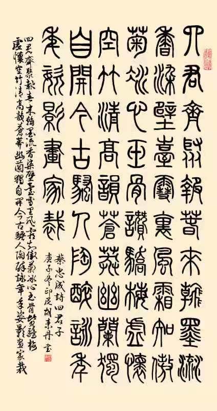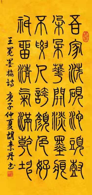 书法写心性,在心性善良的胡素丹女士创作挥写中,蕴含着雅逸闲静的境界,如古月琵琶,素尺丹心。笔者近来观赏到胡素丹创作的篆书作品《善行成德,心作良田》,书法之美及文字含义之美,珠联璧合,浑然一体,向人们叙说着如水上善。