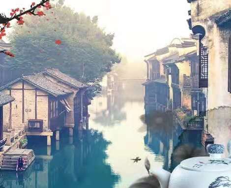 溪水悠悠绕古城,小楼悄隐画林中。