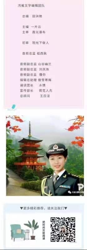 雪莲,重庆江津人。重庆市播音主持协会会员,重庆市音协会员。爱好唱歌和朗诵,希望通过自己的朗诵与大家分享更多美文佳作。