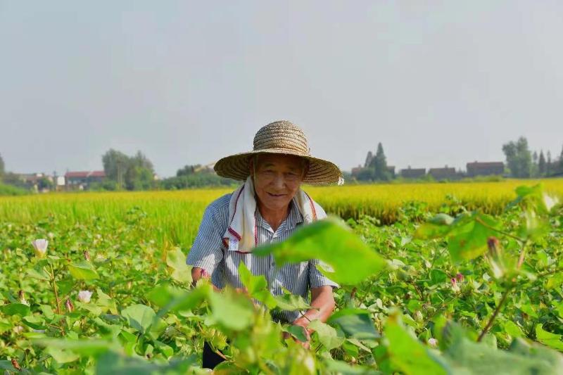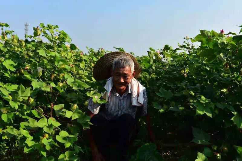 这时老农望着自家棉田喜上眉梢