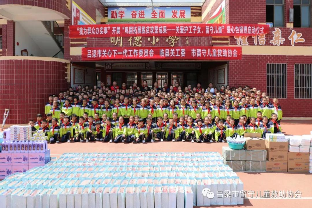5月20日,吕梁市关心下一代工作委员会、临县关工委、吕梁市留守儿童救助协会走进临县前青塘九年制学校,举行2021年“巩固脱贫攻坚成果--关爱护工子女、留守儿童”启动仪式暨爱心包捐赠活动。