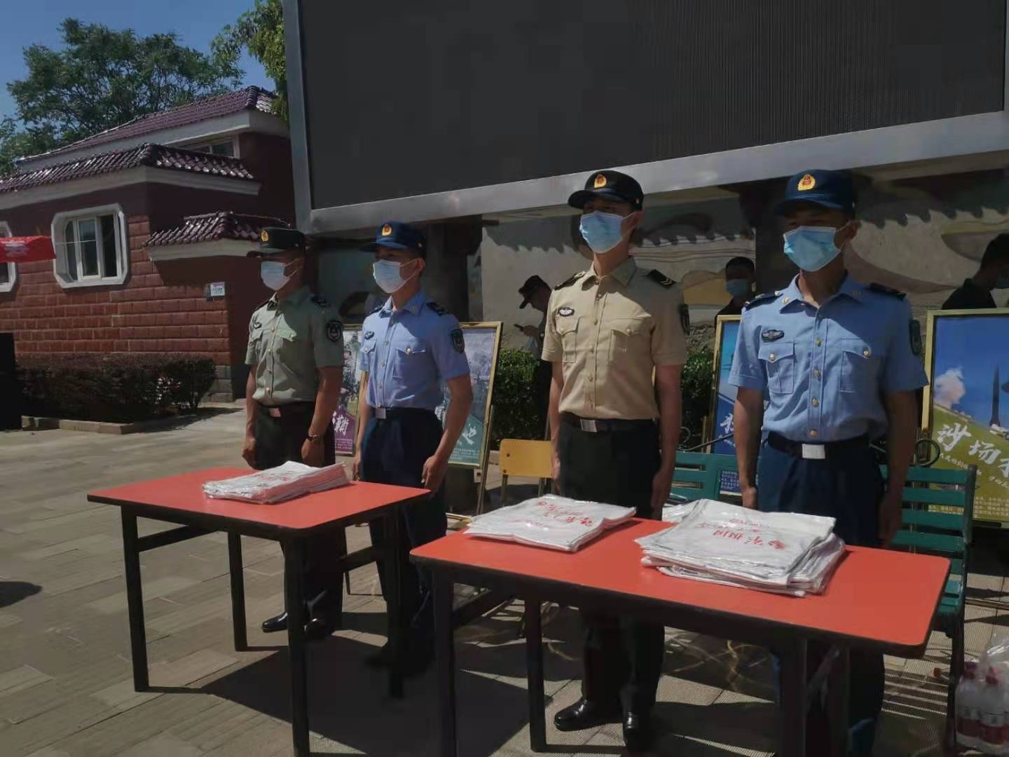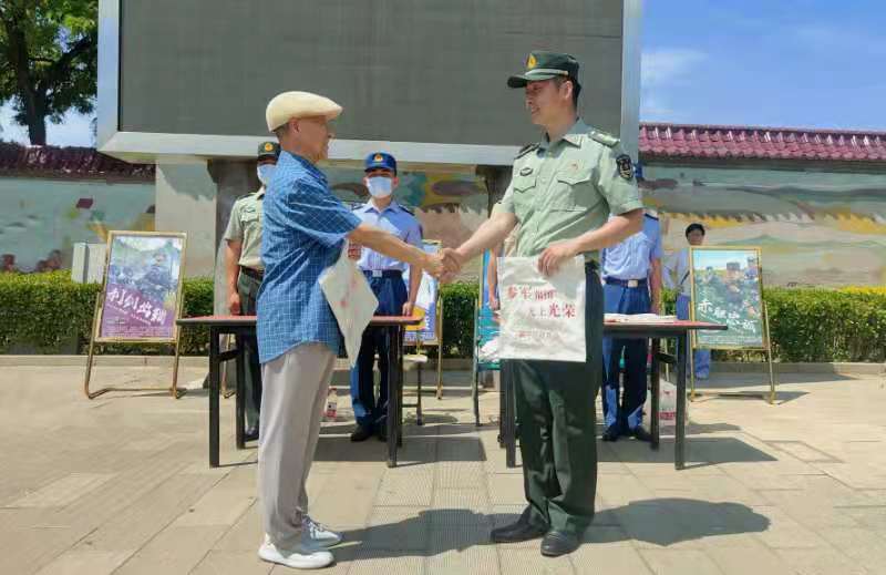 南口地区的陆军、海军、空军、火箭军和武警部队现役官兵代表,为群众发放征兵宣传资料和纪念品!