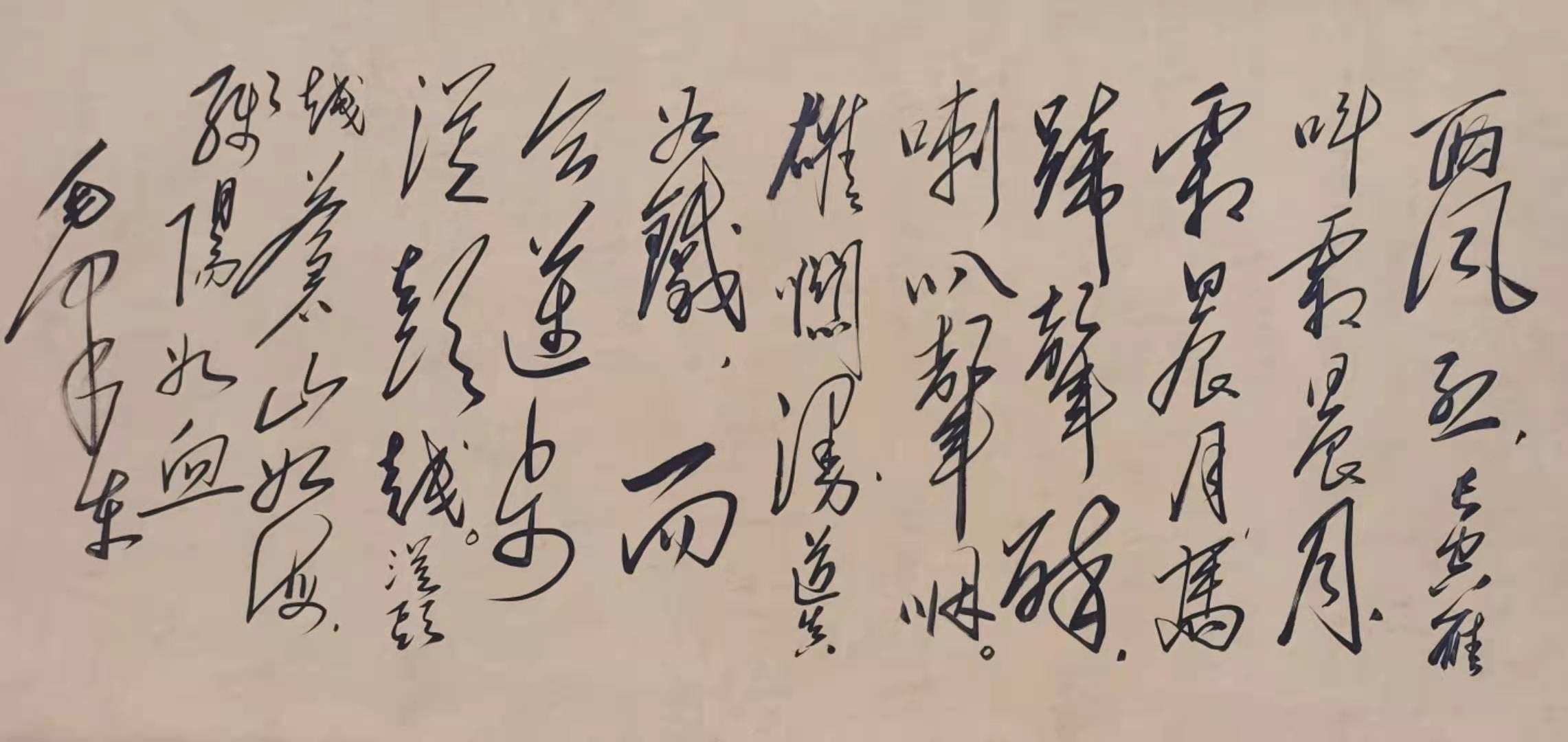 刘般伸先生书法成就的取得并非偶然,这与其深厚的家学渊源和不断的努力学习分不开。刘般伸最初是学习油画创作的,对书法艺术也情有独钟,这为他后来学习毛体书法奠定了的较好的基础。他认真研究自己的笔性与主席的笔性,认为合自之宜。谋整篇布局,在看似零散中,求得整体的协调性,并以气而帅全局,以势而冠象外,深得毛体书法之真谛。他找到了一个完成人生自我追求的正确方向,每日笔耕不辍。他被毛泽东书法的潇洒、超逸、刚劲、有力的笔锋所吸引,一发至今。作为毛体书法忠实传承人,刘般伸先生对于毛体书法的学习研究和实践,不仅达到了形似,而且实现了神似,近乎到了可以以假乱真的地步。