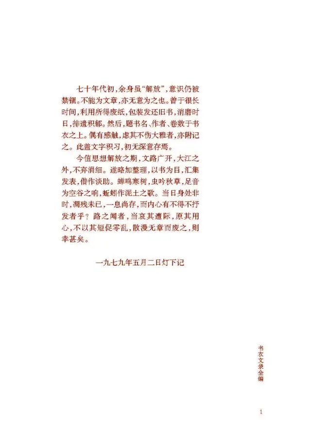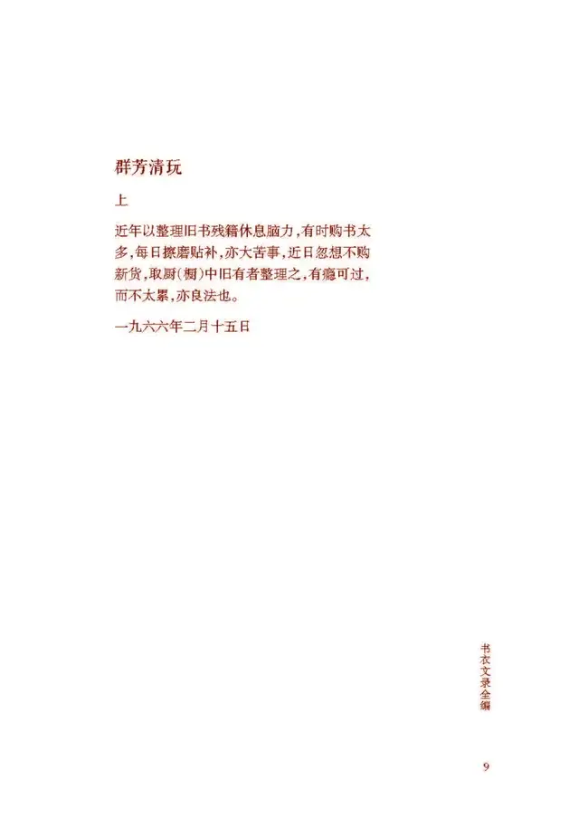 孙犁藏书且惜书,每有中意书,必为之包裹书衣,生怕沾尘惹污;而当时若有心事想法,孙犁习惯于在书衣上简要记下。这就是“书衣文录”。
