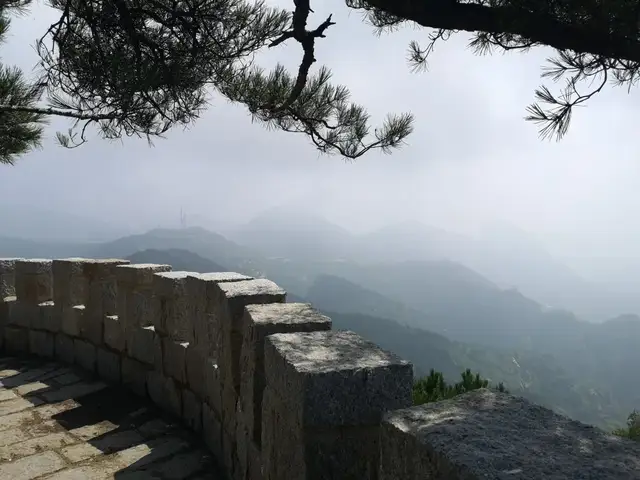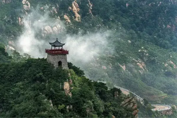 对面略矮于我们所在的山峰处,有亭翼然,名曰如意亭,造型颇具古意,让人想起六一居士笔下醉翁亭的描述。在观景台上看过去,这座如意亭每每入镜完美,真不愧如意之名,摄影师趁机拍下了许多美片片。