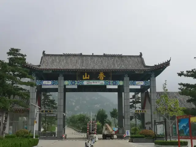 香山脚下的山门牌坊简洁大方,坊上“香山”二字质朴涵韵。山门旁边就是山东香山国际旅游度假区的办公楼。