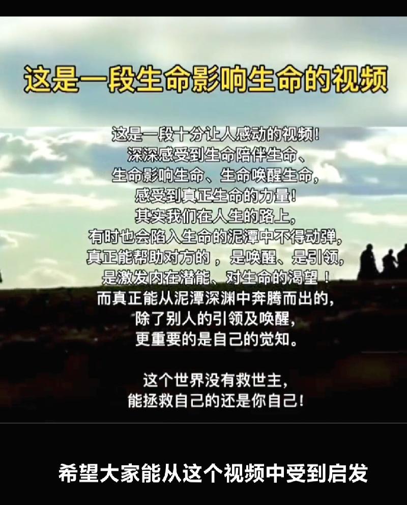 真心的希望朋友能从这段视频中受到启发,用我们的力量去影响即将走入绝望的朋友……