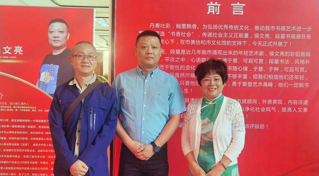丹青吐彩,翰墨飘香,为弘扬优秀传统文化,推动我市书画艺术进一步繁荣,营造“书香社会”,传递社会主义正能量,侯文亮、段星书画展在各级领导的关心下,在市美协和市文化馆的支持下,今天正式开展。