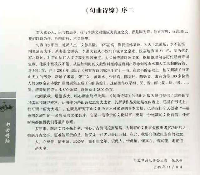 句容诗歌协会张泯刽主席《句曲诗综·序》。