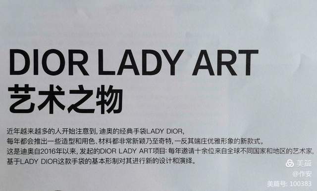 ▓ 作安深圳市当代艺术与城市规划馆《迪奥与艺术》全新展9月26日起在深圳市当代艺术与城市规划馆展出。笔者闻讯先至,三大部分看了整整两个小时。其中,最受关注的是,世界各地艺术新秀和国际知名艺术大师的创意手袋,魅力四射。国际艺术界兼收博采的风貌,凸显跨界碰撞的灵感火花。展期:9月26日至10月26日可携带的臻美艺术品,以蜕变重生的绚丽而夺目,随拍发出来,总有几款让你喜欢!