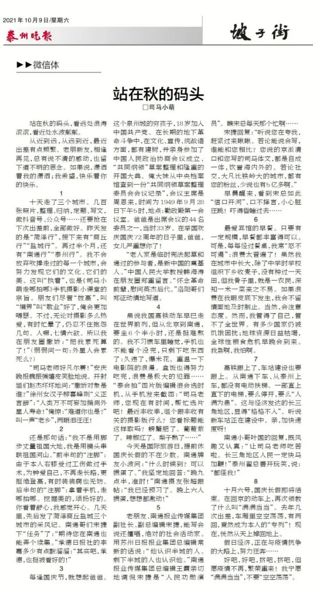 2021年10月9日《泰州晚报》