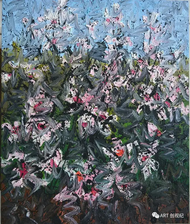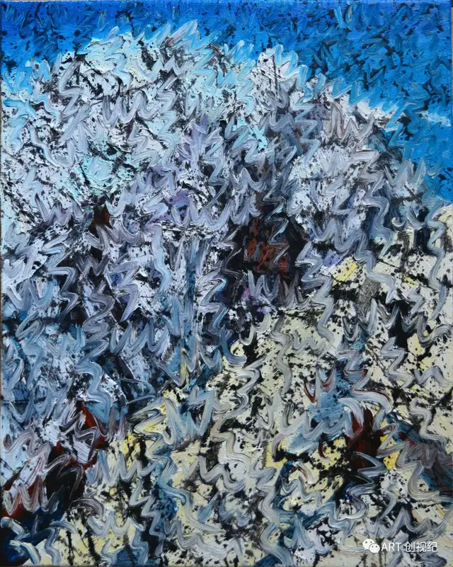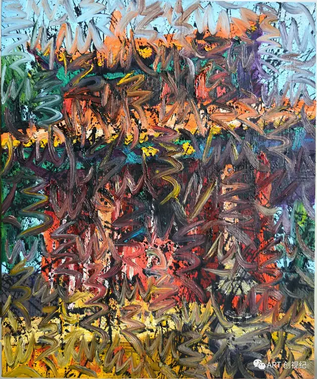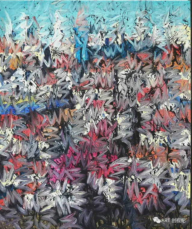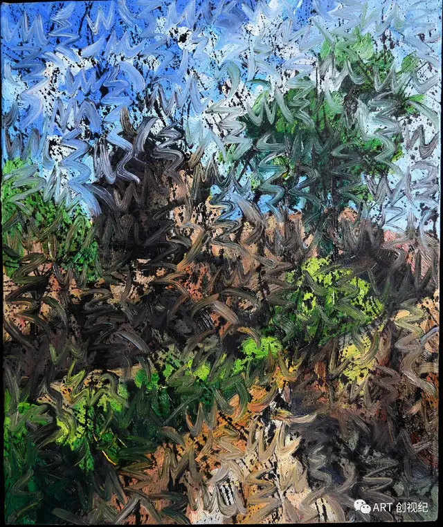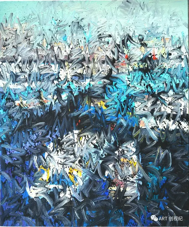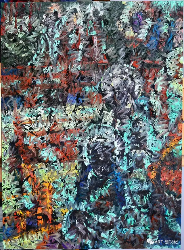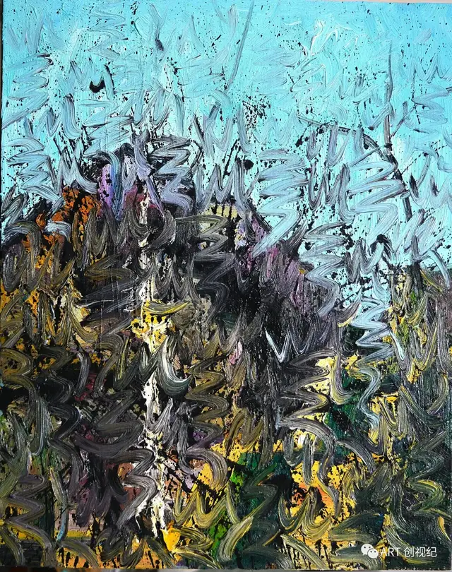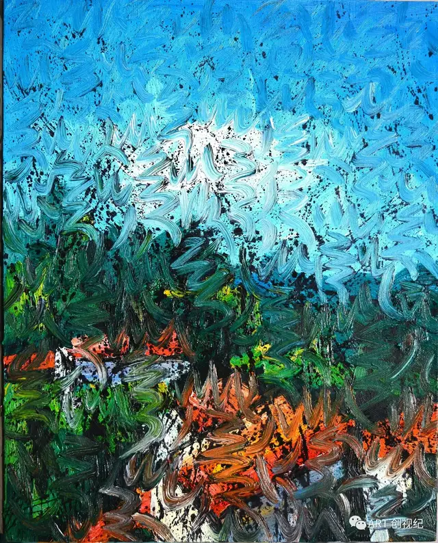 此处看金不是金,此处看木不是木,此处看水不是水,此处看火不是火,此处看土不是土,此处看山不是山,此处看树不是树,此处看人不是人 ……在乎的是节奏与韵律、对比与谐调的纯粹艺术规律性,所有物象有机地融为一体,构成高端自然的隐性结构绘画作品,充满了蓬勃运动的包含视觉和内在的旺盛生命力!