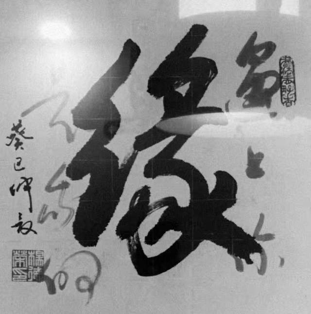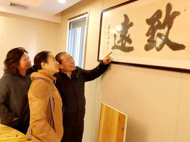 “致远”两个字,墨分层次,笔有实虚。远看有些模糊,近看格外精彩。