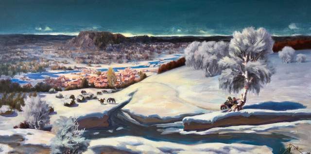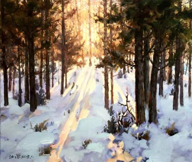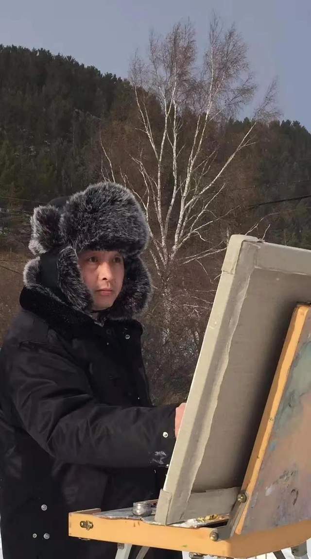 2017年12月,受文旅部艺术发展中心的委托,油画家江浩肩负起打前站安排写生前的事宜和踏查写生路线的任务,冬天的坝上零下28、9度,大雪都封住了所有的道路,他心系艺术家的生命安全,踏遍了塞罕坝所有的道路,一年行程18000多公里,还画了很多作品。他以扎根人民为信念,圆满地完成了任务。