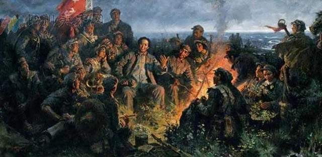 红色经典油画《革命理想高于天》的作者沈尧伊,用写实的手法绘出一个抒情、豪迈而可歌可泣的真实场面。湿寒荒凉泥泞的草原与篝火中战士们火热的革命豪情形成鲜明对比。熊熊的篝火旁主席被战士们团团围绕在中央,他热情洋溢地述说着祖国的前途和未来,所有战士侧耳倾听,战士们充满了对未来憧憬和喜悦。周恩来坐在主席的左手边,右手拿着一根树枝拨动篝火,微笑着注视着主席。为创作此幅作品,作者历时三个多月深入长征路,和当年的老红军战士谈心、交流,创作完成于1976年。该作品展出后令世人瞩目,在社会上引起很大地轰动。