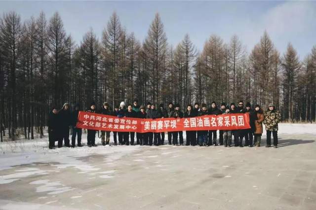 2018年1月文旅部艺术发展中心安排部署了“美丽塞罕坝”写生创作活动。靳尚谊、范迪安、罗中立、杨飞云、庞茂琨、朝戈等50余名老中青知名油画家参与。艺术家们在林场职工家里做客交朋友,职工们的吃苦耐劳、坚毅朴素的高贵品格感染着艺术家们,使他们真正的体会到了塞罕坝人55年三代人前赴后继、在“黄沙遮天日,飞鸟无栖树”的不毛之地建造了世界上最大的人工林,塑造了首都和华北地区的水源卫士和风沙屏障,用生命谱写了可歌可泣的绿色传奇。这个英雄的集体2017年获得联合国环境规划署颁发的“地球卫士”奖;2018年总书记作出了“弘扬塞罕坝精神”的重要批示。一年中,艺术家们历时76天写生创作了5300余件作品。在创作出很多优秀作品的同时,他们的身心、意志得到了锻炼和洗礼,心灵得到了净化和升华。