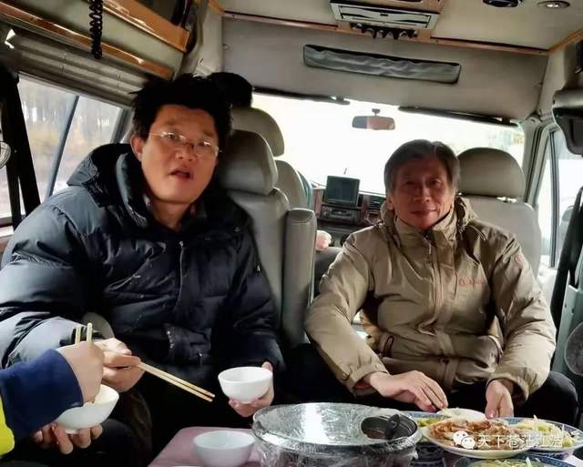 中国美协主席 中央美院院长范迪安老师和江浩老师写生时在面包车上就餐