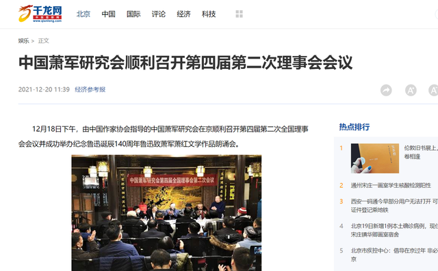 腾讯新闻:中国萧军研究会在京顺利召开第四届第二次全国理事会会议