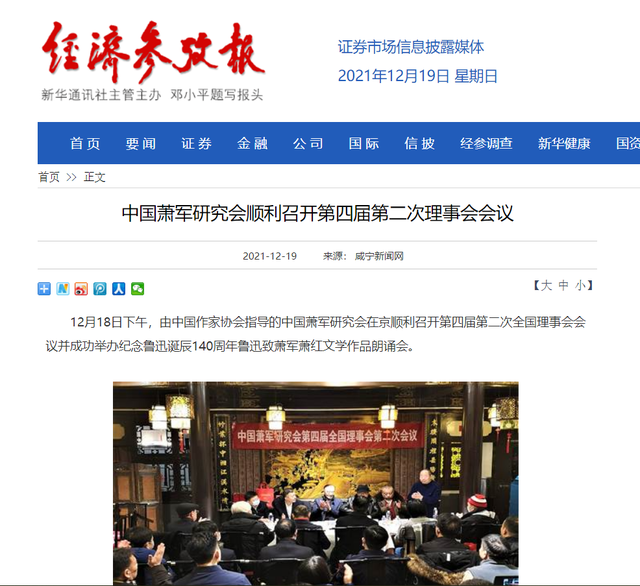 新华社《经济参考报》官方网站: 中国萧军研究会顺利召开第四届第二次理事会会议