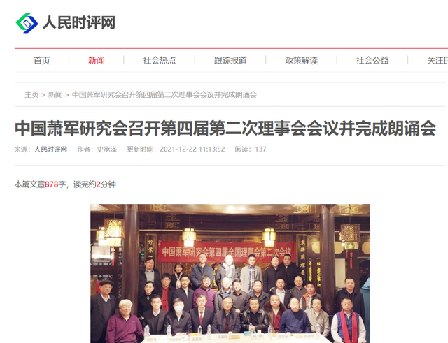人民时评网:中国萧军研究会召开第四届第二次理事会会议并完成朗诵会