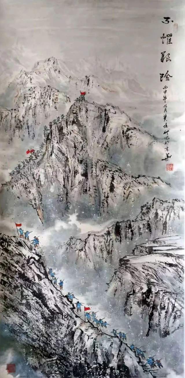 “长城雄姿收心底、青山秀水落笔端”。冀培礼几十年来、用古朴中饱含宽广的构思、细腻处深藏磅礴的笔韵、尽情描画出大自然的炫丽画卷、抒发对祖国的无限热爱情怀! 继承传统不泥古,开拓创新不离源。不忘初心记使命,弘扬文化为人民。为庆祝建党伟业创作的长征图,受到老将军和军博物馆馆长的强力支持。