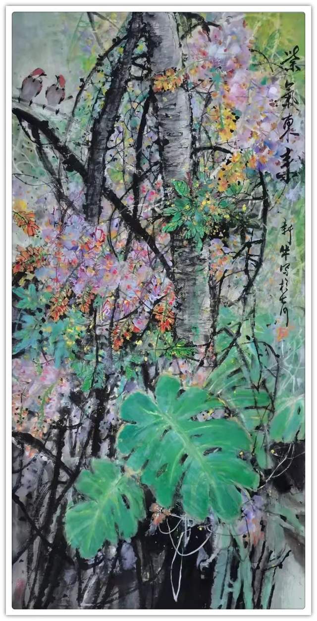 易女士能从生活中获取灵感,她基于传统,又重视于画外功夫,多方的艺术修养为其花鸟作品呈现出了有深度的意境。与此同时,易女士又能够很好地抓住世人的视觉审美,所以她所创作的花鸟题材基本都很受人们喜爱。纵赏易女士的众幅花鸟作品,其作品重点一笔一墨都皆具想法,虽为写意,但却细腻,整个笔墨是与作品的整体构思达成了一致,笔法轻重急缓各得其所,墨法浓淡干湿各显其妙,花筋花叶,于工中有写,于写中有工,朵朵花卉有的是百花争艳,有的是少女姣姿,更有的是似亭亭玉立的舞女,婀娜多姿,眉目传情!