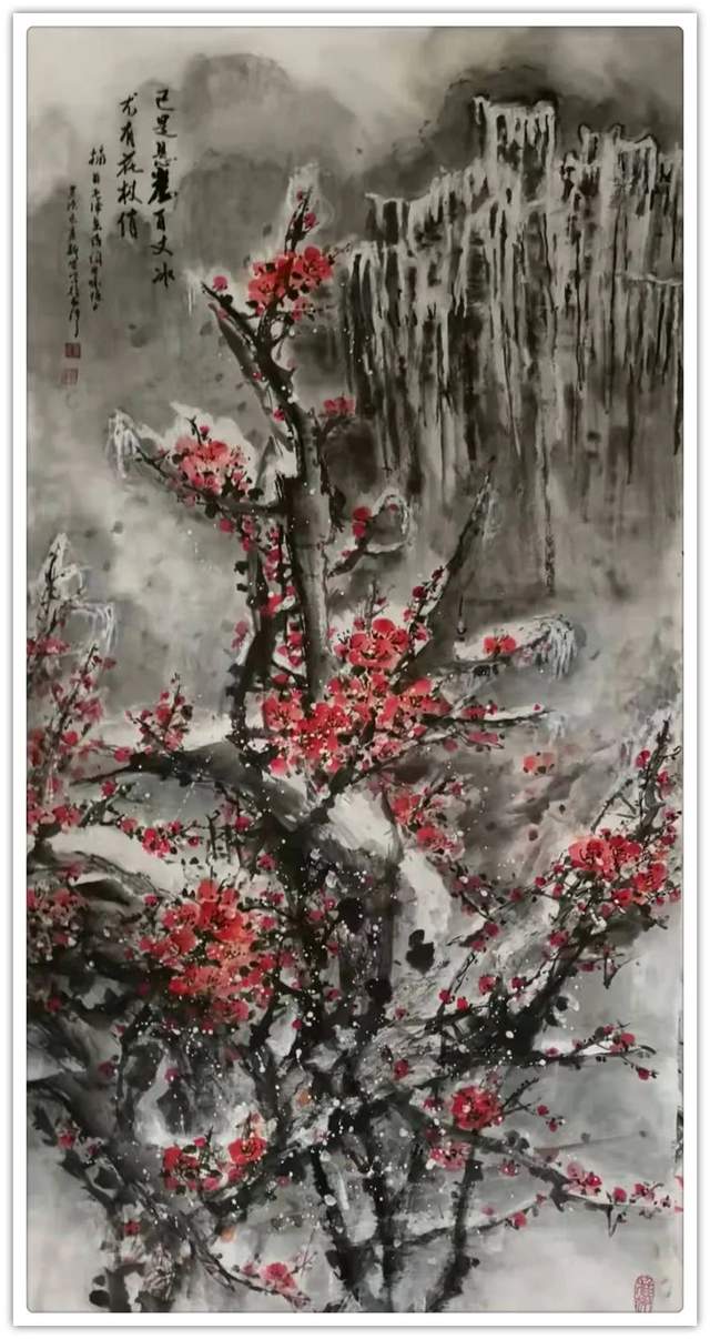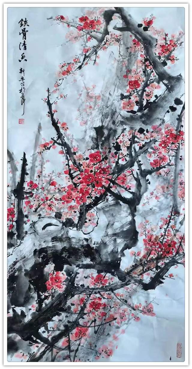 (6)国画《红梅报春》参加2020年"国都杯”全国美术书法邀请展成功入展并获“金"奖;