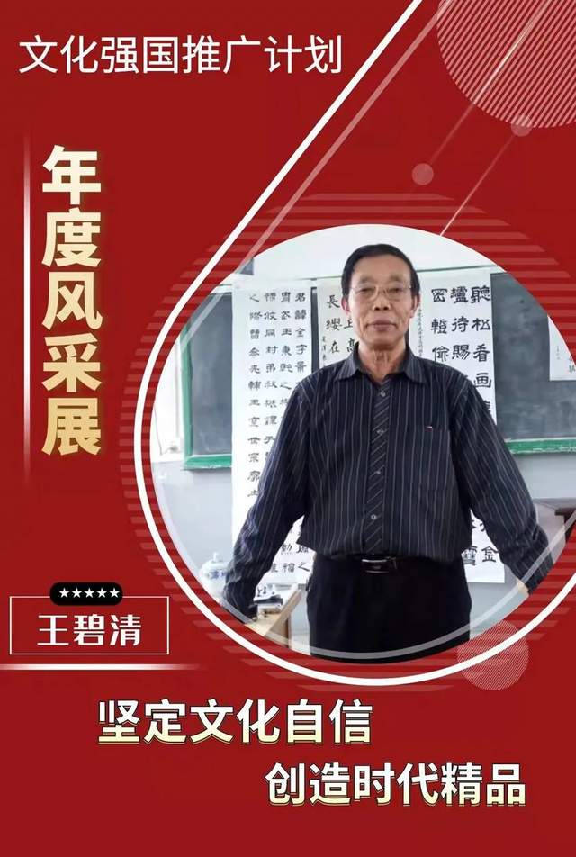 王碧清,字蜀都、笔名白石、祖籍:四川省彭州市人,自幼受蜀都文化熏陶,65年应征入伍,经多年军旅生活的洗礼,对书法受益良多,而立之年,刀耕不辍、署往寒来、夜夜秉烛、汉瓦秦砖、秉心揣摩,人到古稀,作品初有问世,13年中央电视台书法频道“农行杯”邀请赛、参赛作品获二十三期展播;14年中央电视台迎春书画展,参赛作品获入编选集,同年十一月长沙晩睛书画院举办纪念邓小平100周年诞辰书法大赛,参赛作品获金奖,并入编大型红色艺术史籍;14年6月全国第五届“義之杯”诗书邀请赛,作品获二等奖,同年八月全国十四届“庐山杯”大赛,作品获优秀奖,同年加入中国书画家协会;14年东方美全国诗书大赛,作品获,金奖,同年九月全国十五届“庐山杯”大赛,作品获二等奖:16年被北京丹青堂授予国家一级书画师和终身名誉主席;同年七月被河南东坡书画院授予常务理事:17年作为新时代书画领军代表人物献礼全国两会;18年9月被聘为中国书画家联谊会新文艺群体书画家工作委员会副秘书长;19年被中国艺术院推荐为年度影响力艺术家;2020年作为书画界品牌人物献礼全国两会,同年6月加入香港书法协会,并授予常务理事,红年华书画馆名誉副院长。