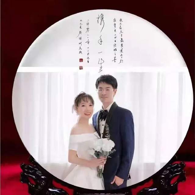 瓷盘与书法合二为一,自然与墨韵相映成趣,新娘与新郎永浴爱河。所有的美好都可以借助瓷盘美满的呈现!愿所有的祝福,在瞬间得以永恒!