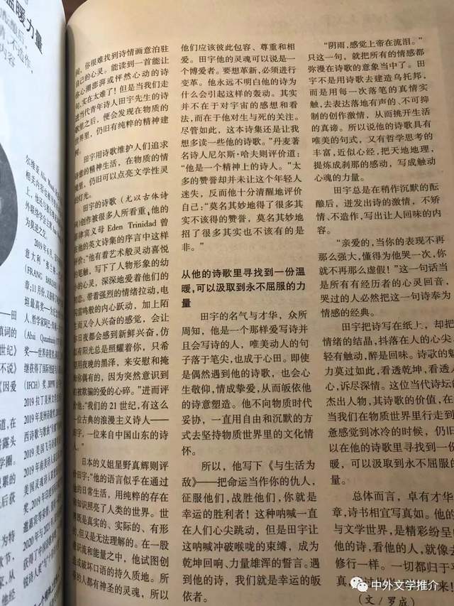 Tian Yu uses poetry to maintain people's pursuit of poetic spiritual life. In the material situation, he can still light up the light of literary spirit.