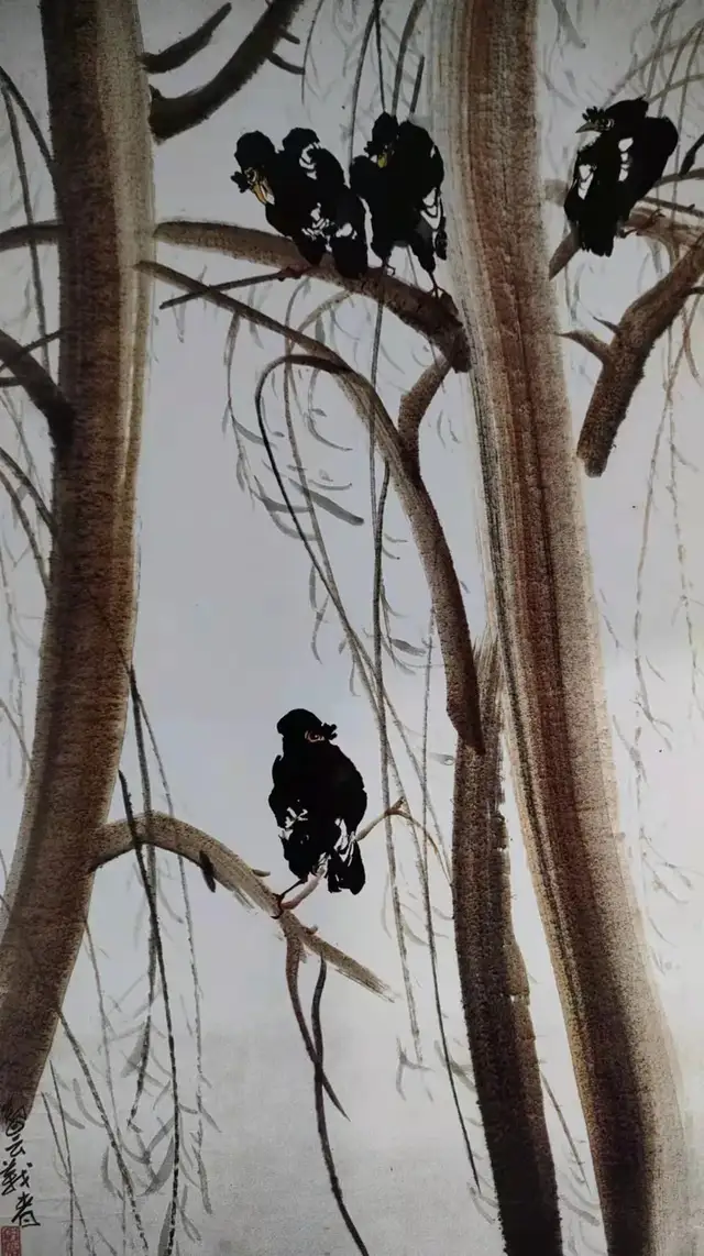 八哥醉柳