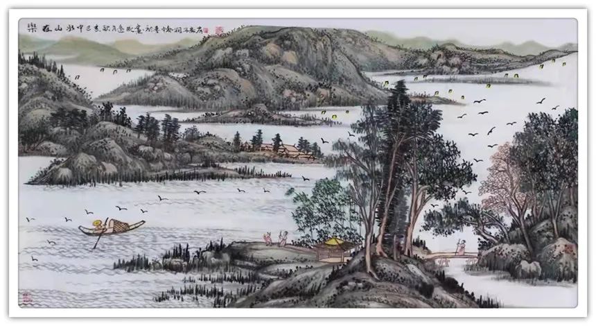 中国绘画历史悠久,尤其山水画,是一种暗涵人生哲理最高的艺术,是一种自然与人文的完美统一,是一种摆脱世俗的精神追求。石涛就曾有语,“画者、于心者也”。可见传统美学早就将美定格在生命榜样的高度,也就是说,是将艺术根基放在心灵之上而不是视觉方面。这个高度是创作者通过客体的景融合主体的情,以此传递出一个天地大美心境淡远的精神境界。