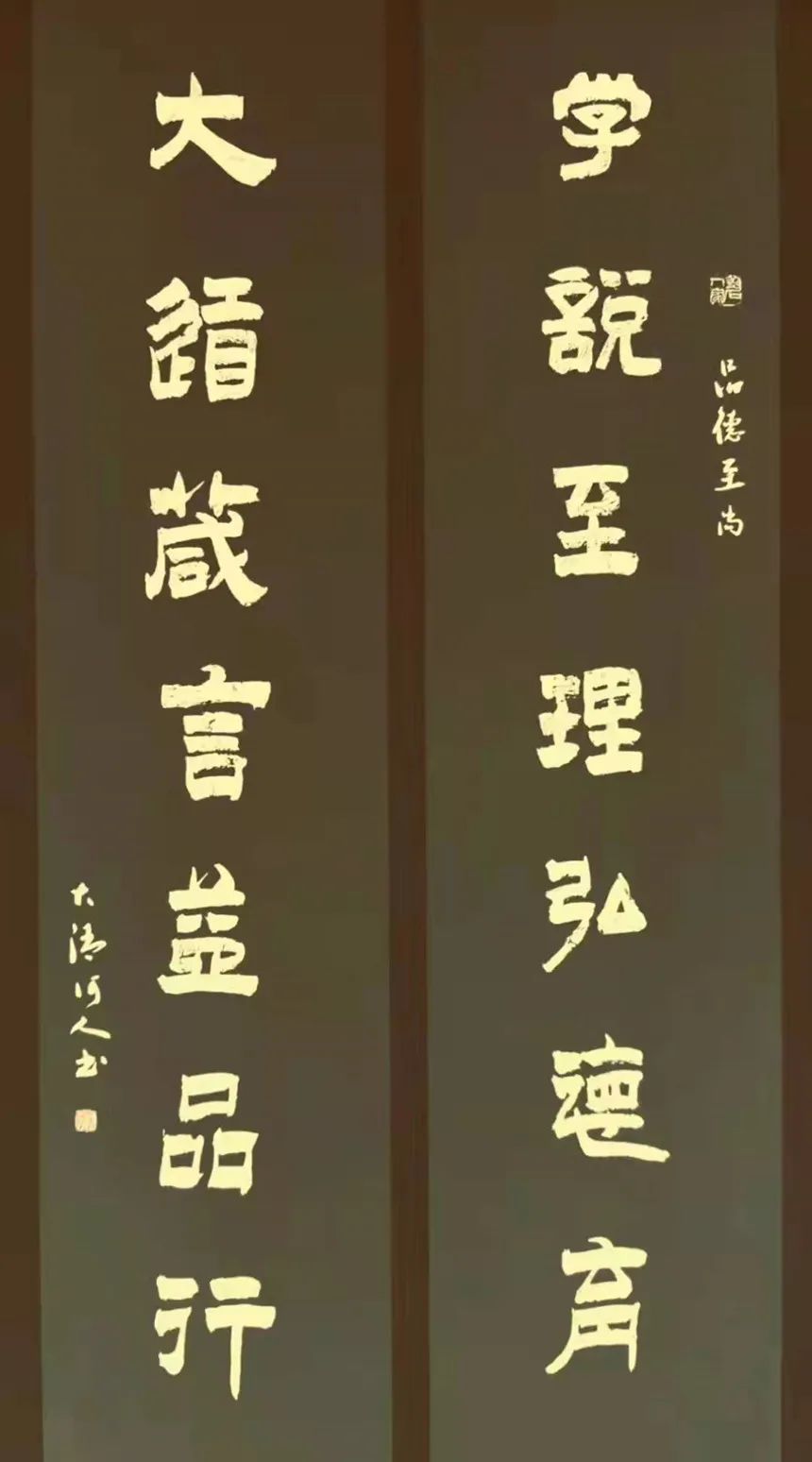 最为可贵的是,刘砚军老师对魏碑修炼更是精益求精,从始至今,他已专攻魏碑数十年之久,成为书界深谙魏碑原质和复成之功的专家大才。他利用魏碑的端正楷形与斧凿坚韧,不断涵养书法的碑学气质,让他的书法在帖学精华的一旁,又威然生立出碑骨风采,书法坚韧雄迈,刚柔相济,力透纸背,悦目动心。特别是结体中正,章法严谨,十美皆居。修成之绩恰是碑学大师康有为所论:成碑学者,可得书法真髓,真书家也。刘砚军依遥临顶的魏碑功力,铸立新峰,成为书法界的佳绩与佳话。