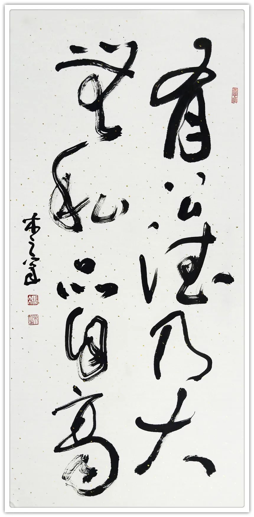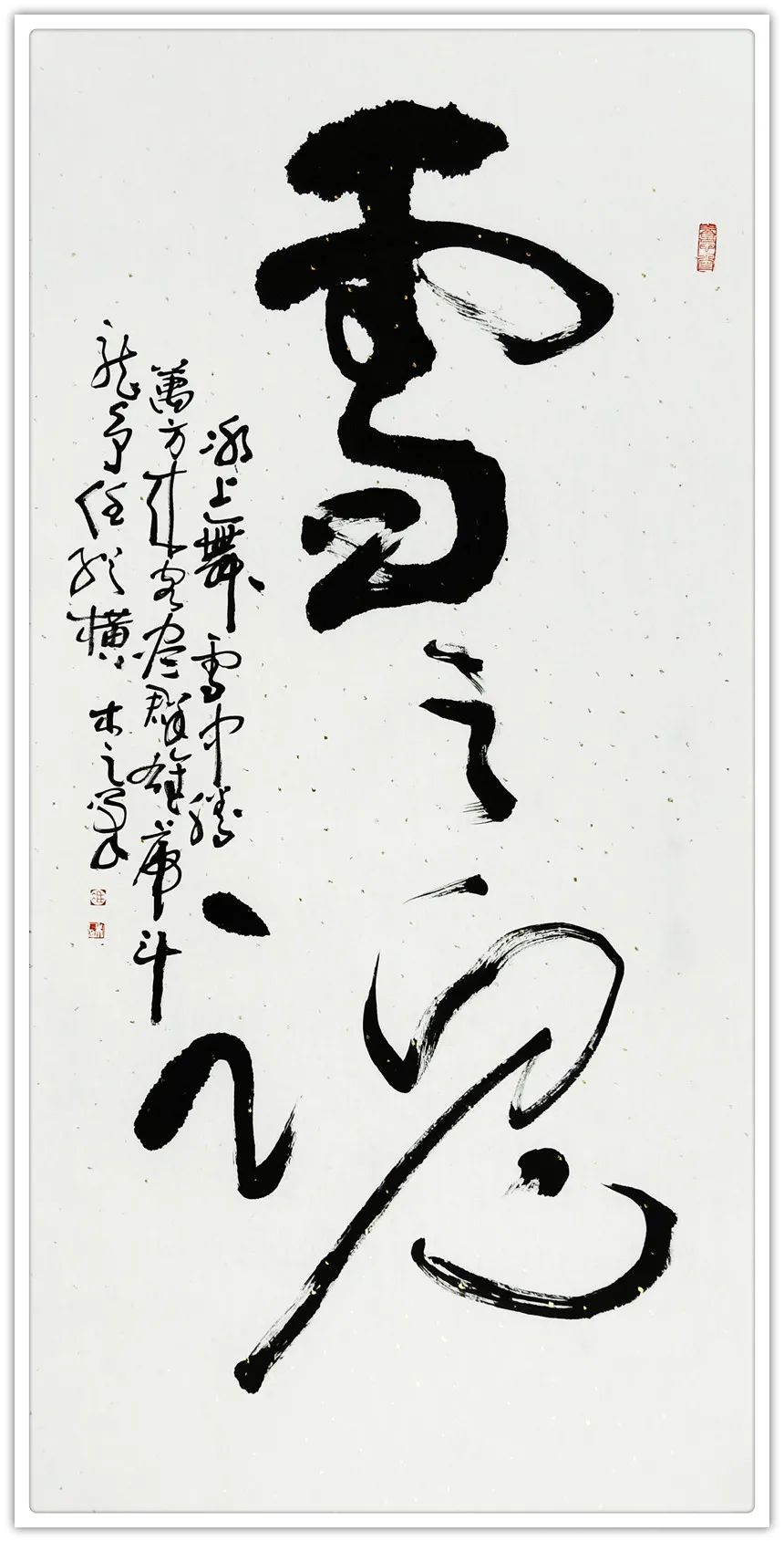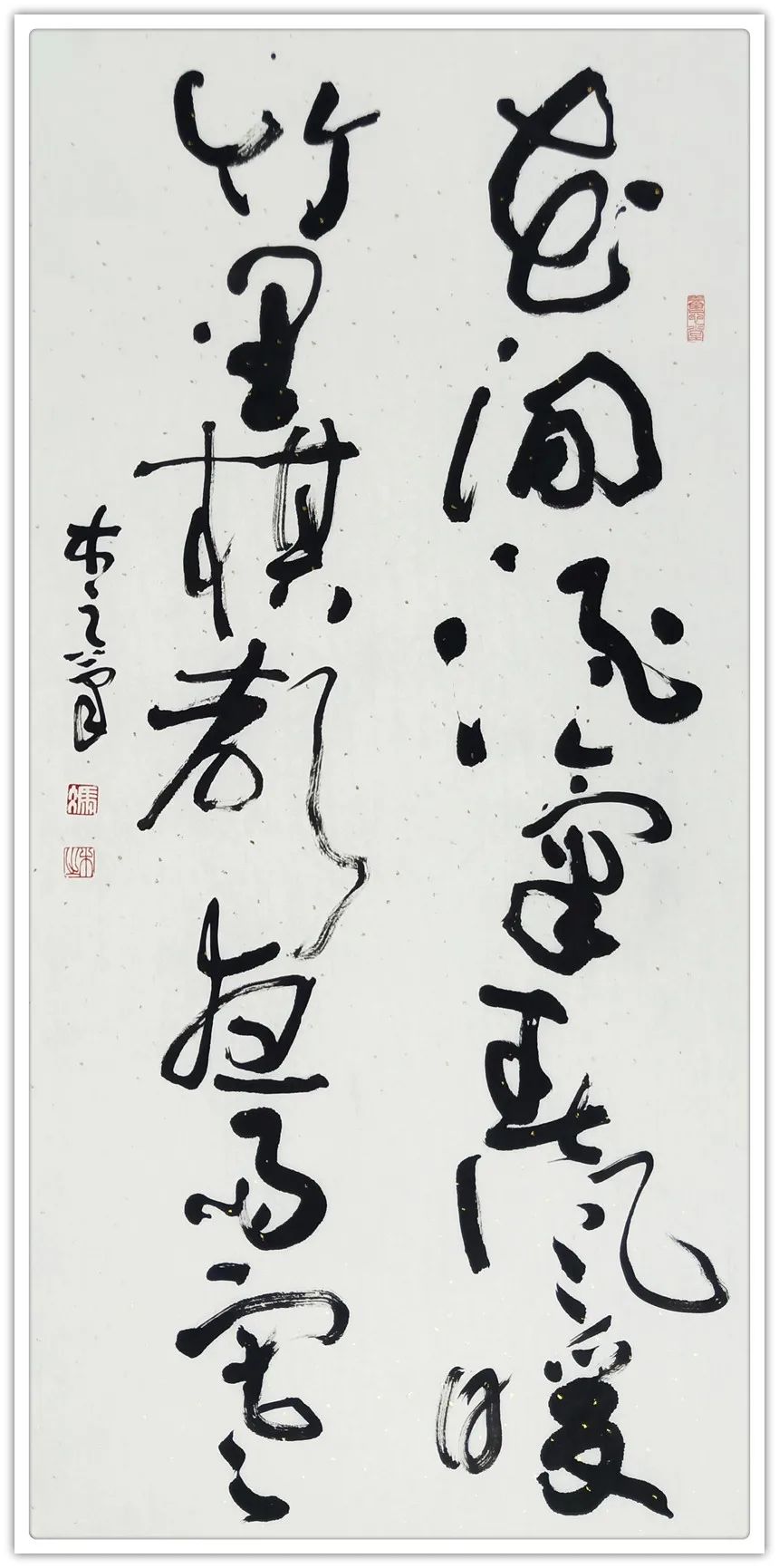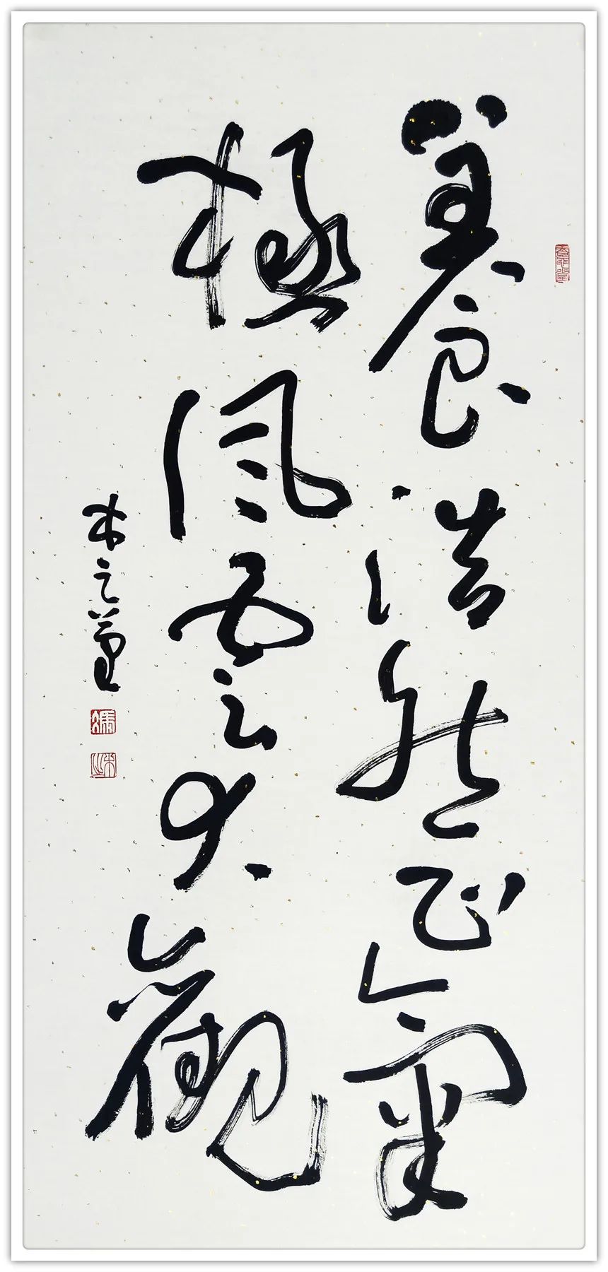在草书的创作上,冯海波先生已然是达到了一种由心入境的状态!通幅草书作品可寄心于笔墨,可寄情于字势,笔法时而游刃自如,激扬多姿,时而行运极清,虚实相济。而在墨法上,他更是尤善于掌握墨韵的变化节奏,用墨枯时,笔线好似干裂之秋风,可堪苍劲遒健,用墨浓时,则好似天朗之气清,可察迅疾酣畅!而其作中的每一个草体字势,更是充分的诠释了什么是形神相顾,什么是意气相接,是谓变化无穷,爽利自然也!可以说,无论是草书的笔墨功法,还是草体的神逸品境,在冯海波先生的手中,其均是得到了全面的个人舒展和独特呈现!而这也正是其众幅草书作品能够引起观赏者心神共鸣的重要原因之一!