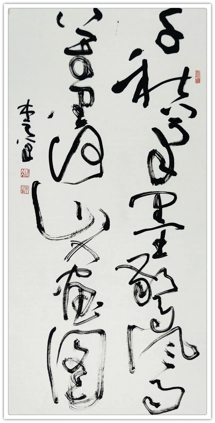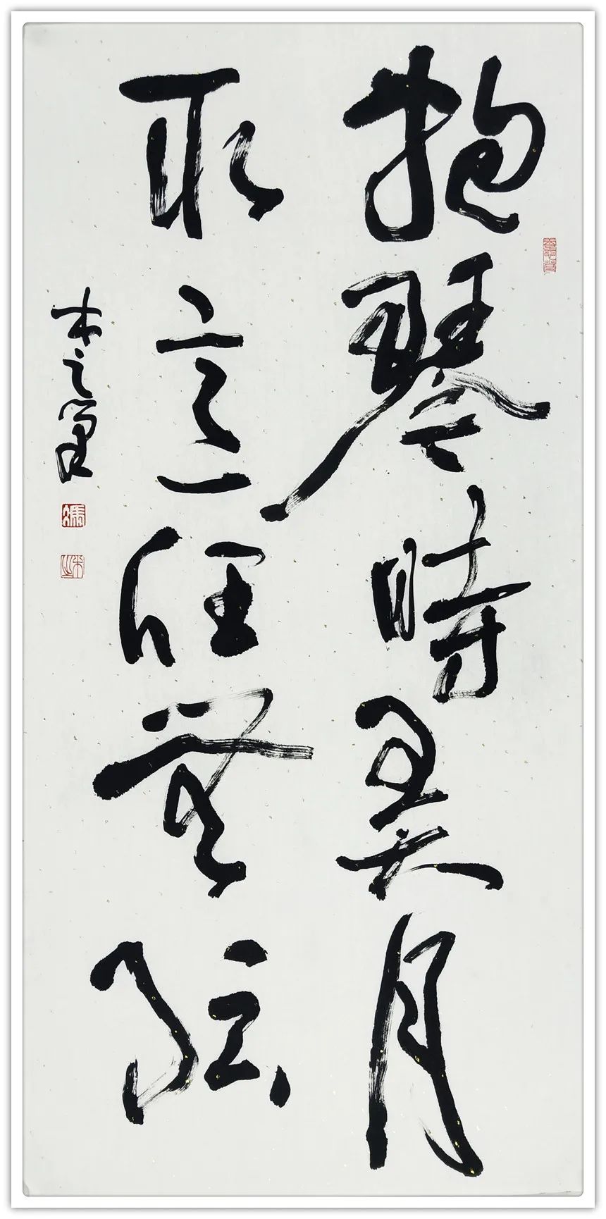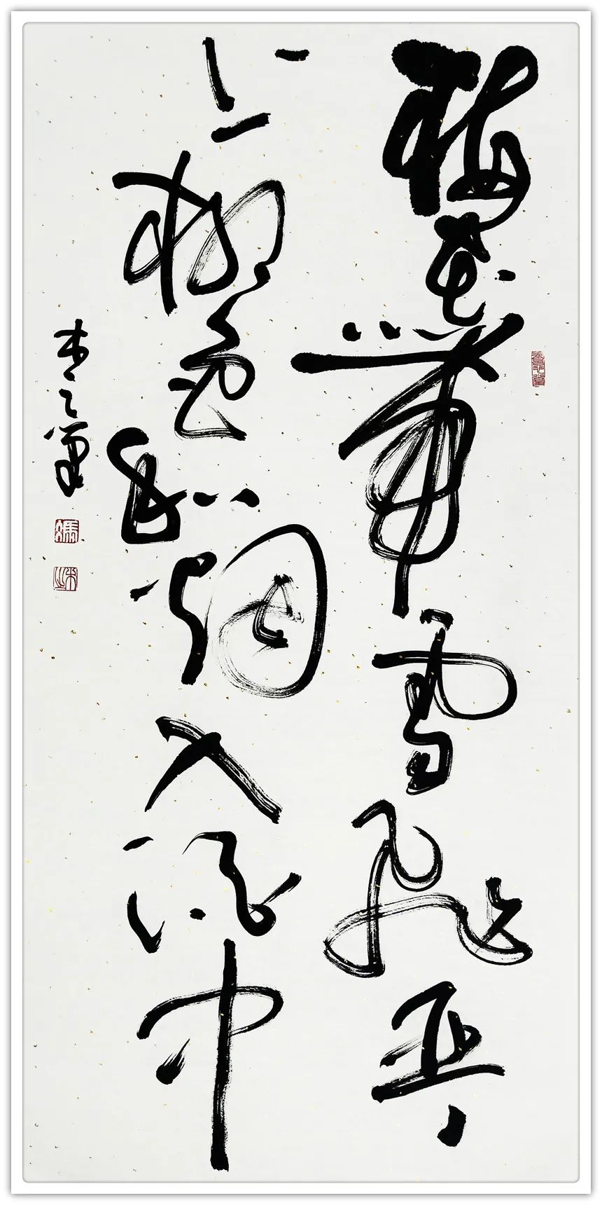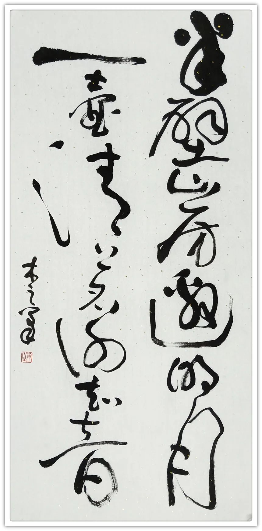 在草书的创作上,冯海波先生已然是达到了一种由心入境的状态!通幅草书作品可寄心于笔墨,可寄情于字势,笔法时而游刃自如,激扬多姿,时而行运极清,虚实相济。而在墨法上,他更是尤善于掌握墨韵的变化节奏,用墨枯时,笔线好似干裂之秋风,可堪苍劲遒健,用墨浓时,则好似天朗之气清,可察迅疾酣畅!而其作中的每一个草体字势,更是充分的诠释了什么是形神相顾,什么是意气相接,是谓变化无穷,爽利自然也!可以说,无论是草书的笔墨功法,还是草体的神逸品境,在冯海波先生的手中,其均是得到了全面的个人舒展和独特呈现!而这也正是其众幅草书作品能够引起观赏者心神共鸣的重要原因之一!